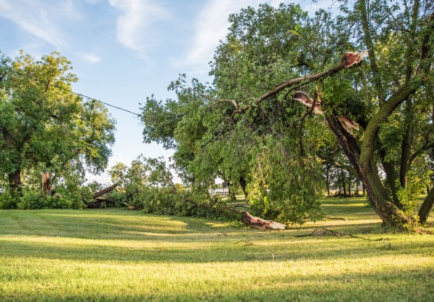 Trees and branches down all over the place. Something a little extra seemed to have happened at the Keystone... at one spot there are 3 or 4 trees and branches all down in one spot (see pic).