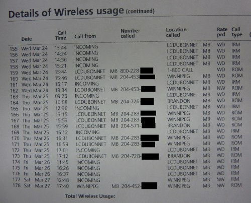 I dont know if this is a problem with just me, or if it is a problem with all Rogers customers in Brandon, I just got my most recent bill today, and looking at calls between Tuesday March 23rd and Sunday March 28th, every single call I made/received was apparently done so in Lac du Bonnet, but I was in Brandon the entire time. So I was wondering if any other Rogers (or possibly even Fido) customers have the same error on their bill. With this error, if you don't have a long distance plan on your Rogers account, every call you make will be considered long distance. I hope this error was just isolated with me. I'll be calling Rogers tech support immediately and telling them of this issue. I don't want to see hundreds of Rogers customers getting a strange bill with long distance calls that are supposed to be local