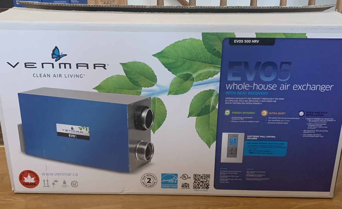 We have a venmar air exchanger and it’s old, installed in 1989, it’s been a good unit but had to add a trim heater just to bring the temperature of the incoming air up when it was really cold.