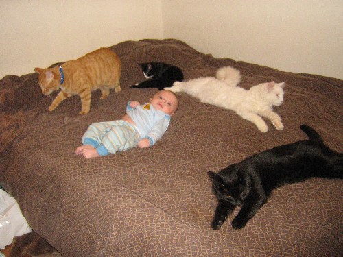 Hello, my wife and I are recently proud parents of a lovely baby girl. It has been our dream come true. Our situation is this, we live in a one bedroom apartment, walk up (53 stairs) rather irrelvant info but whatever. We are in need of advice. We have a cat , that we have had for 9 years and as aforementioned we just had a baby. In effect we do not trust the cat around the baby. I know there will be people argueing on the cats behalf, but what for? If anyone was in our position would they not second guess the cat? We have to keep the baby in her bassinette beside the bed , we also have to close the bedroom door, to keep the cat out, so we are pretty hot 'locked in our room' All the while the cat bellows at the door to get in. To be sure we are aspiring that someone will read this and say , I will take the cat off your hands, the cat would come fixed and with all the neccessary cat paraphenelia, please help us out. If we had a house or prospects thereof we would for all intnese purposes keep the cat. We feel kind of guilty with this approach regarding our cat.