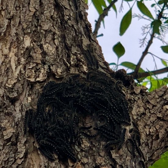 Well... it is that time of the year again! They are hatching with the warm weather we had today!!! We went out and cleaned off all little groups of the tent caterpillars and all the egg masses we could find, placing them into a bucket and put the lid on tight. If you do so in your yard on your trees now, you won't have to deal with as many of them later!