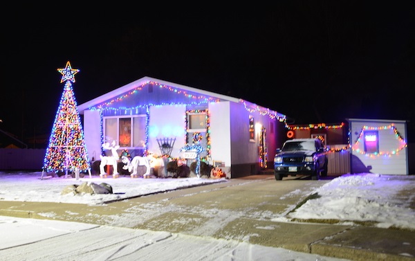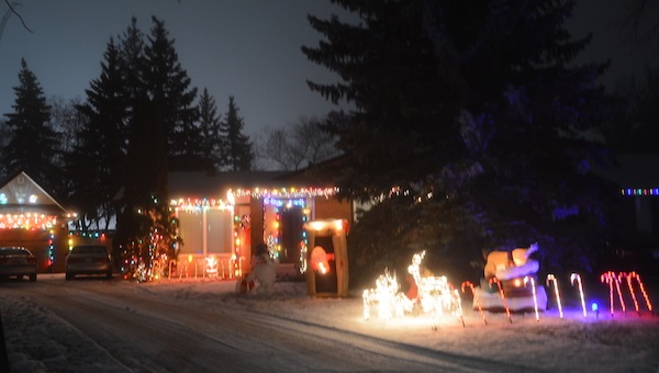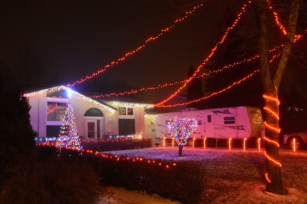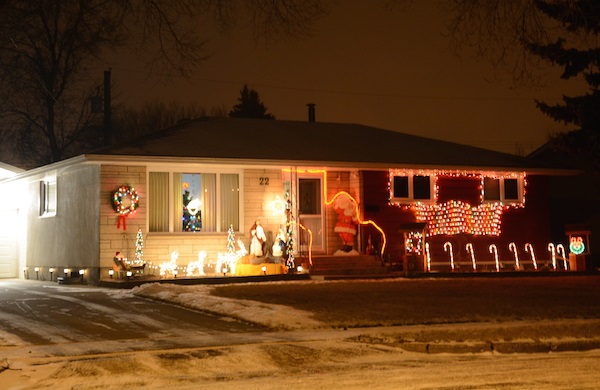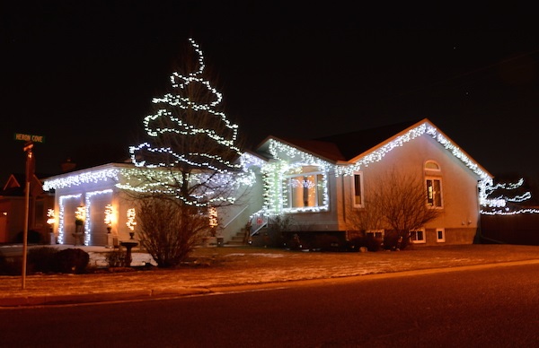 My Inlaws live on elderwood so we go down there often...nice to see a street with so many lights!! The one on the end (truck in driveway says brymars I think??) is one of our fav's. So classy looking!