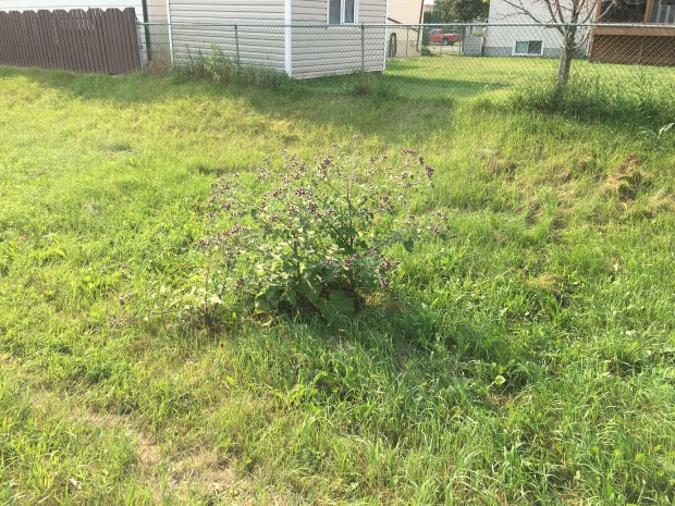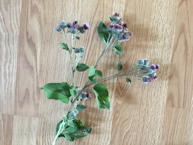 Keep in mind that Roundup kills most plants that it touches, so it will probably kill grass under the burdock plant.