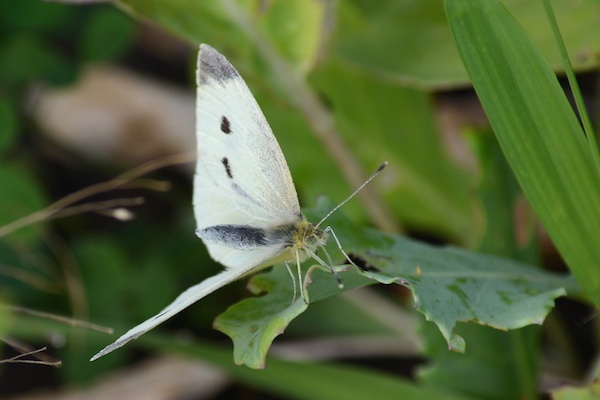 Butterflies and moths also tend to hold their wings differently when they rest. You'll often see moths with their wings draped down their backs or spread out to the side. Unless butterflies are warming themselves in the sun, they typically hold their wings upright and folded together, perpendicular to their backs.