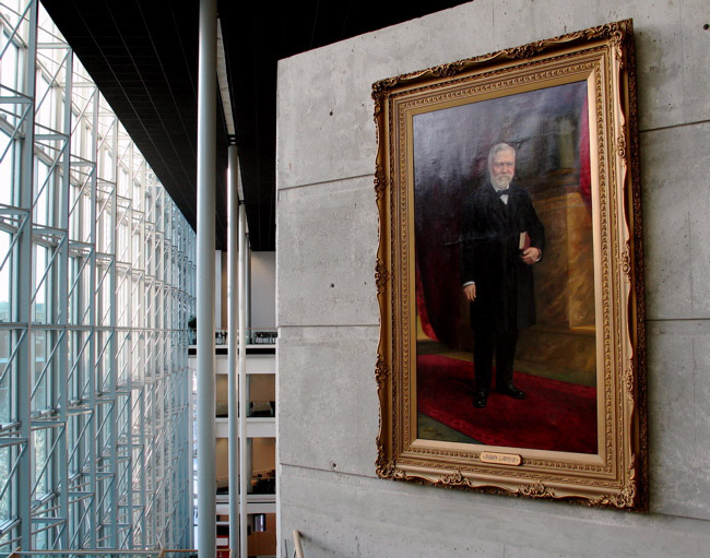 Carnegie's massive portrait was restored and relocated to the Millennium Library.
