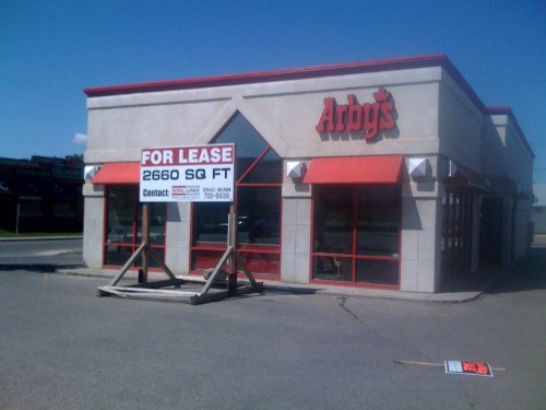 What the haeck happaned to Arby's?? Maybe I'm just out to lunch, but I just noticed yesterday that it was closed and had a big for sale sign in front. Has it been like this for long? I hate to see another Brandon business close it's doors. I find it surprising since it is a franchise and had a super spot along busy 18th.???