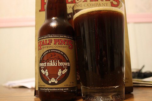 I prefer Half Pints? Why? They have the most diverse styles of beer compared to Fort Garry. Their lineup is crazy, for their every day lineup they have a strong (real) India Pale Ale (Little Scrapper), a nice coffee flavoured Stout (Stir Stick Stout), a brown ale called Sweet Nikki brown (as it says on the label: a little sweet and a little bitter, just like my wife (YIKES!!)), as well as their new beer St James Pale Ale.. which is a fan favourite of my friends, I got one of my best friends to try it at a pub in Winnipeg, she was like "if I dont like it, you owe me BIG time!", but now.. its her favourite beer. I like it, my girlfriend likes it, it's a very very good alternative to Labatt Blue, Molson Canadian and Kokanee, plus its local.
